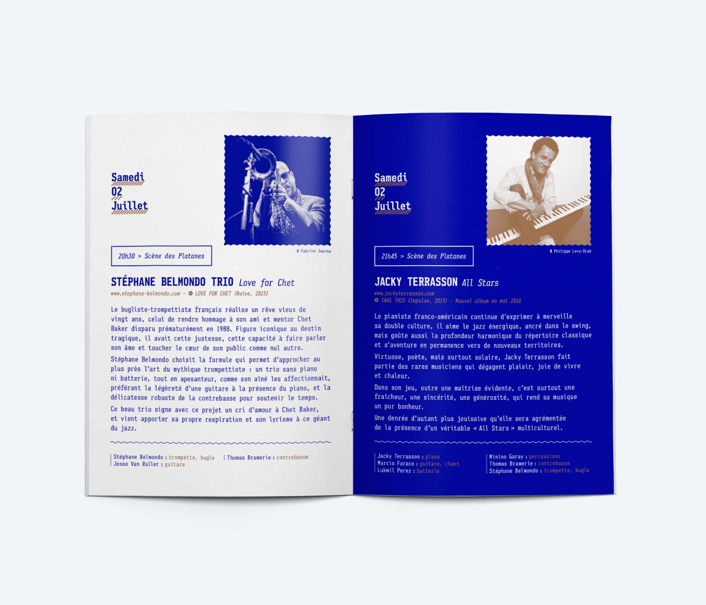 Ma communication met en avant le cadre du festival avec la feuille de platane, emblématique du domaine de Fontblanche.