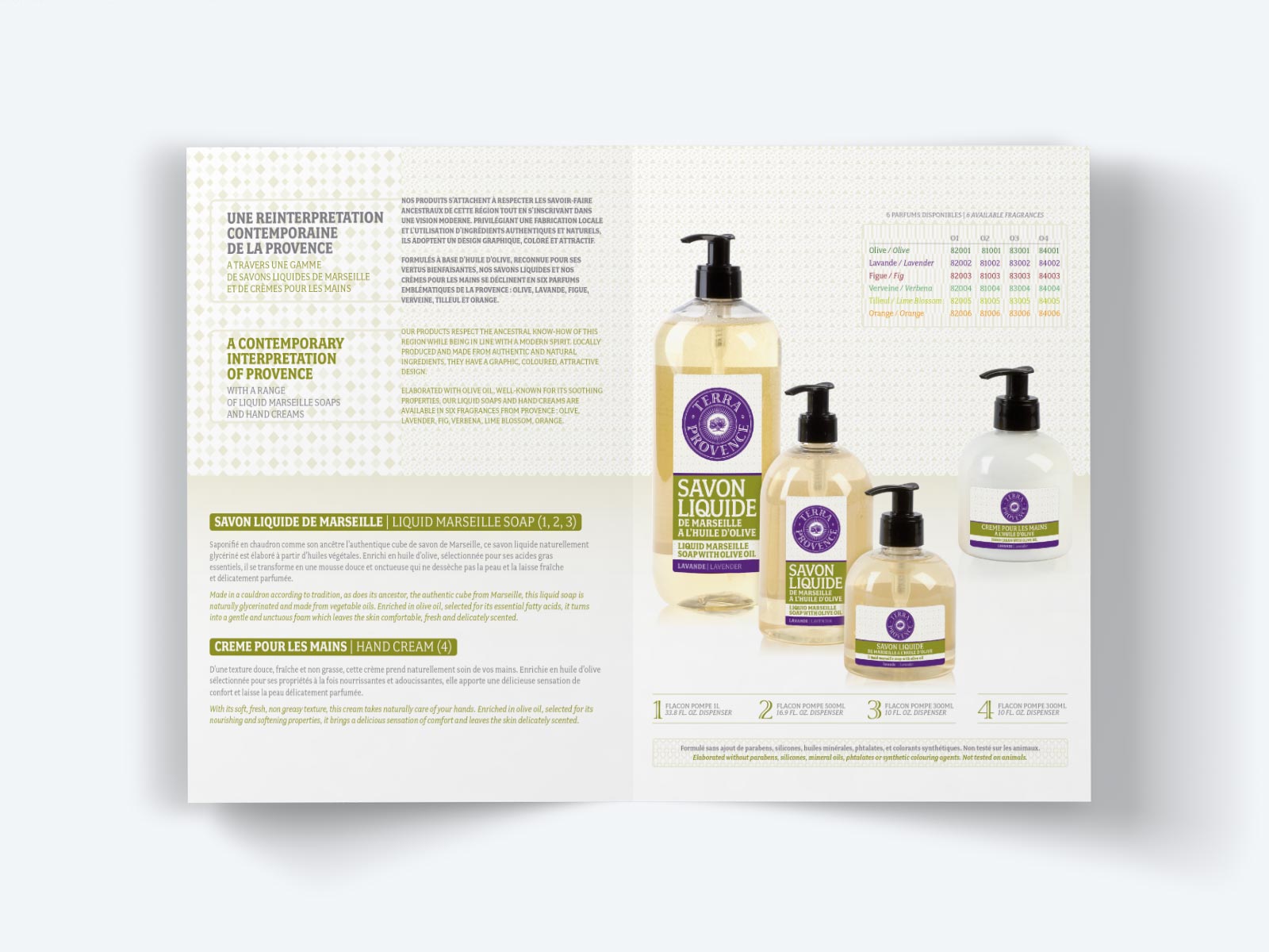 Le logo retranscrit l’authenticité de la marque, ses valeurs d’appartenance à la Provence et son savoir-faire dans les savons. Une gamme couleur a été développée afin de discerner les différents produits.