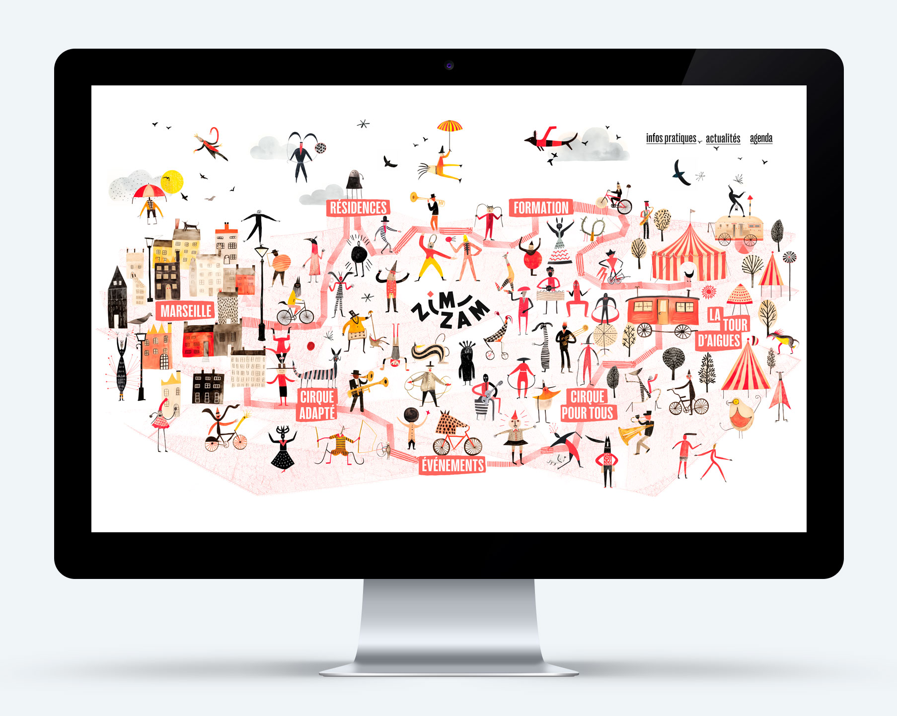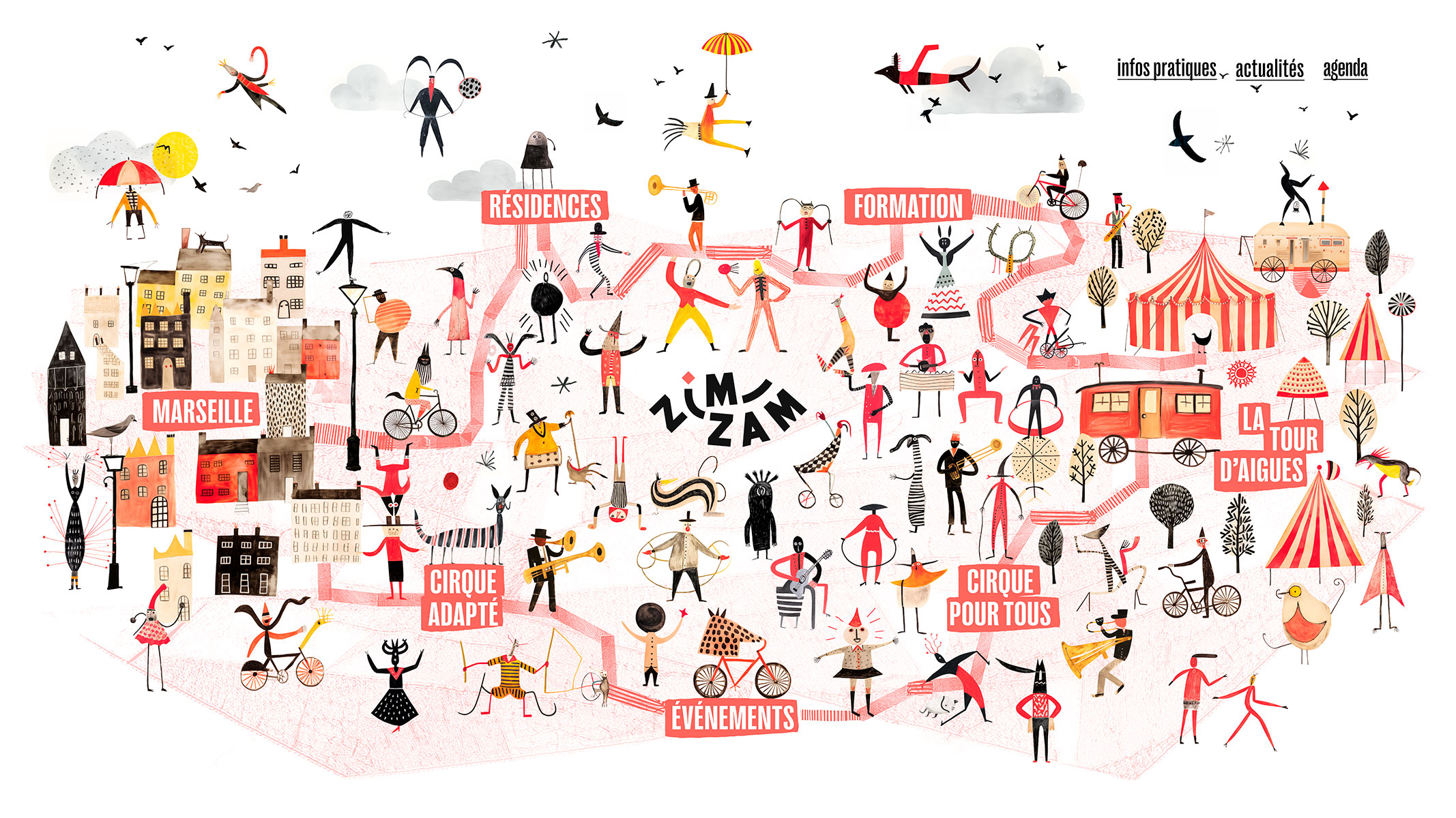 Réalisation du logo, de l’illustration pour l’entrée de leur site internet, ainsi que d’une affiche générique facilement déclinable pour leur événement Détours de cirque (programmation saisonnière, de 2 ou 3 événements par an).