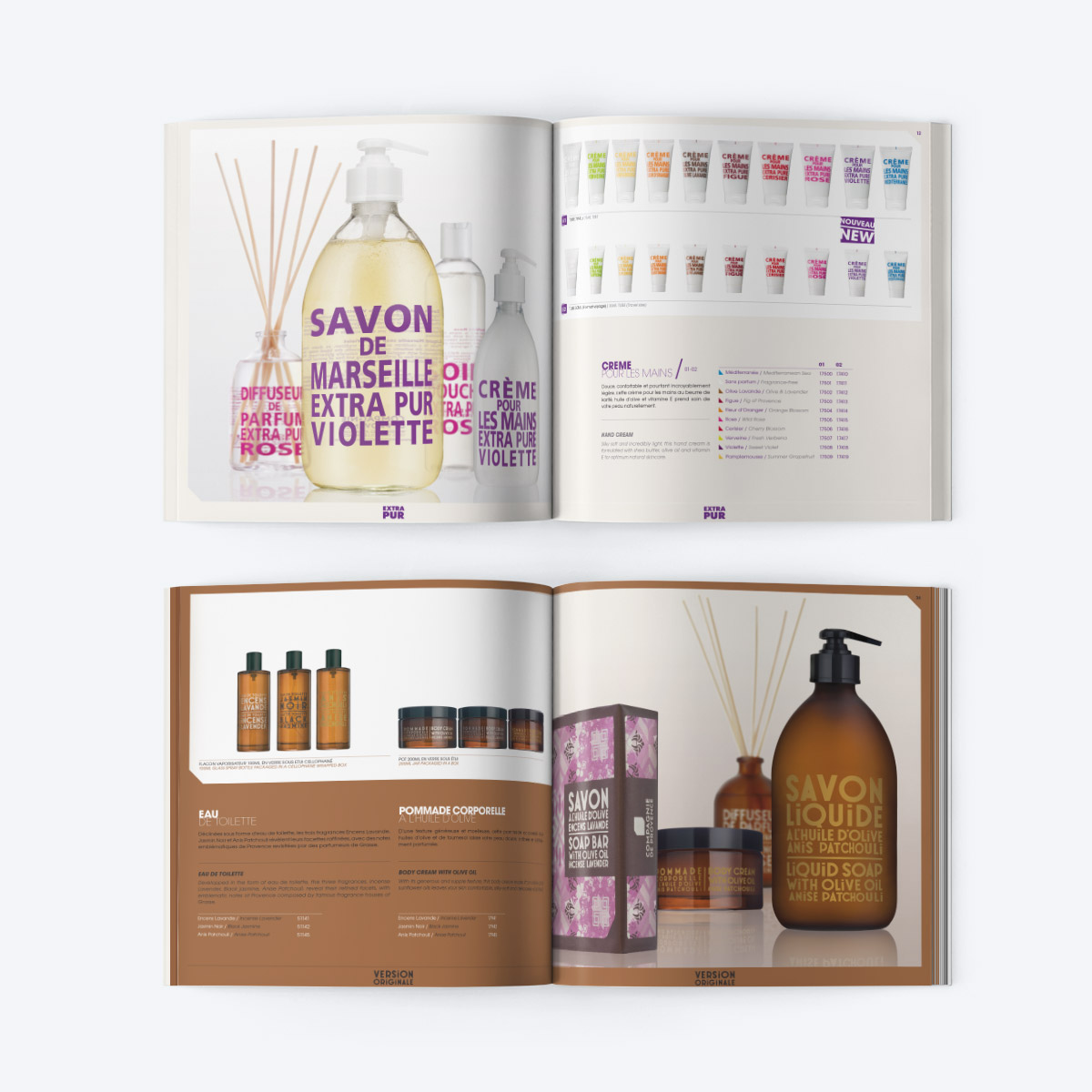 Pendant 4 ans, mon travail pour La Compagnie de Provence s’est essentiellement porté sur la réalisation des catalogues produits de la marque, mais aussi sur la recherche et la création de supports publicitaires et packagings.